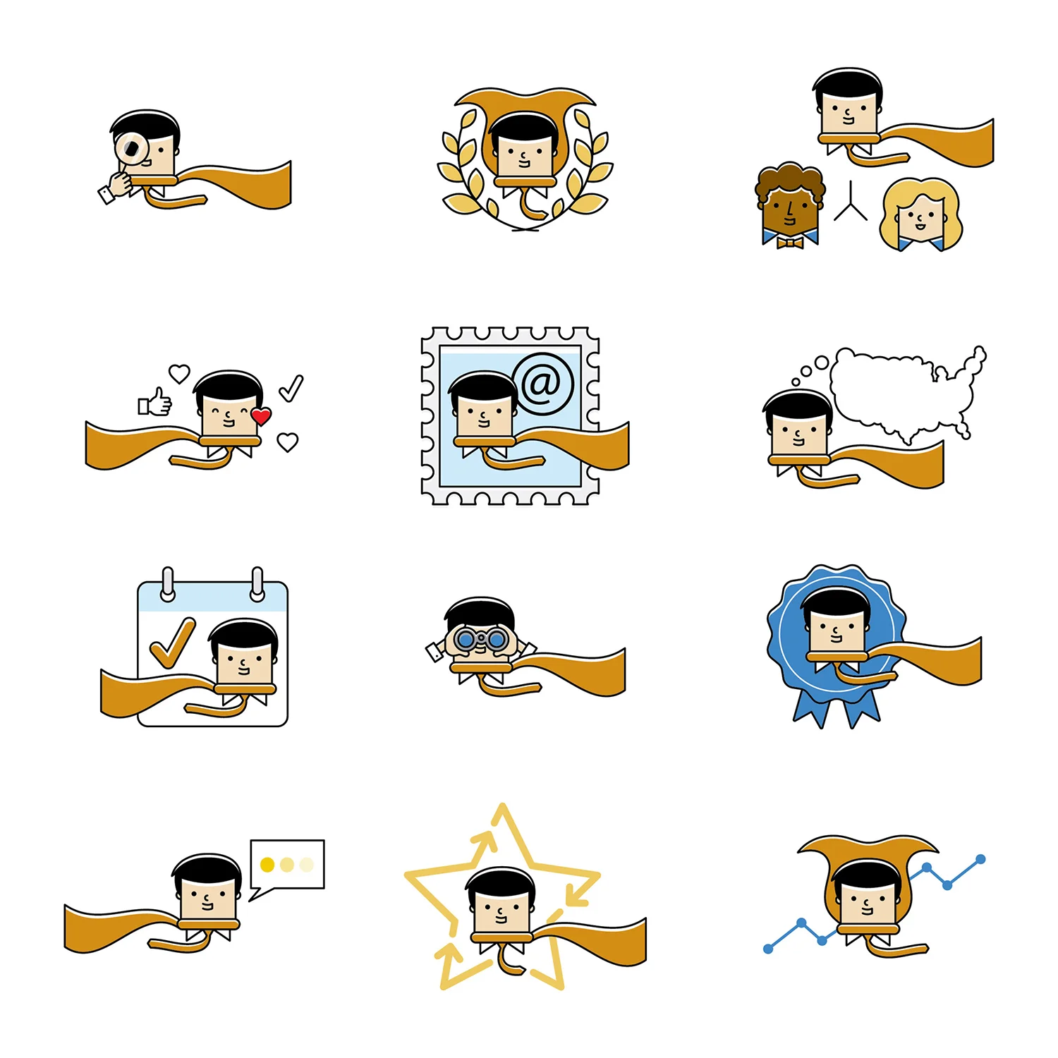 I love to design icons. My focus is to infuse each with its own special personality. I especially like building collections that tell cohesive stories. Here’s a sampling of some personal favorites I've created.