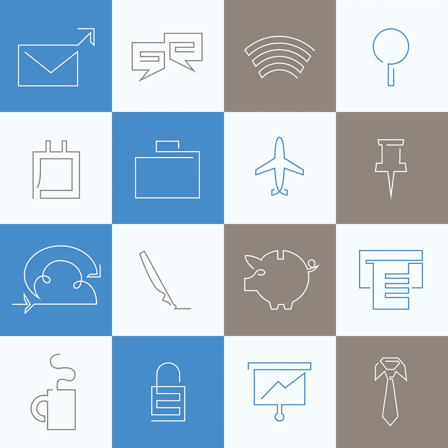 Personal project. "Another Day at the Office" Collection. Clean and simple, each icon is illustrated with a single unbroken line.