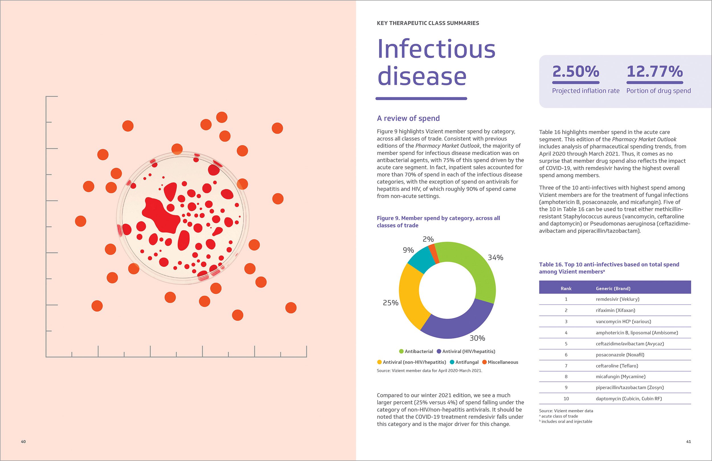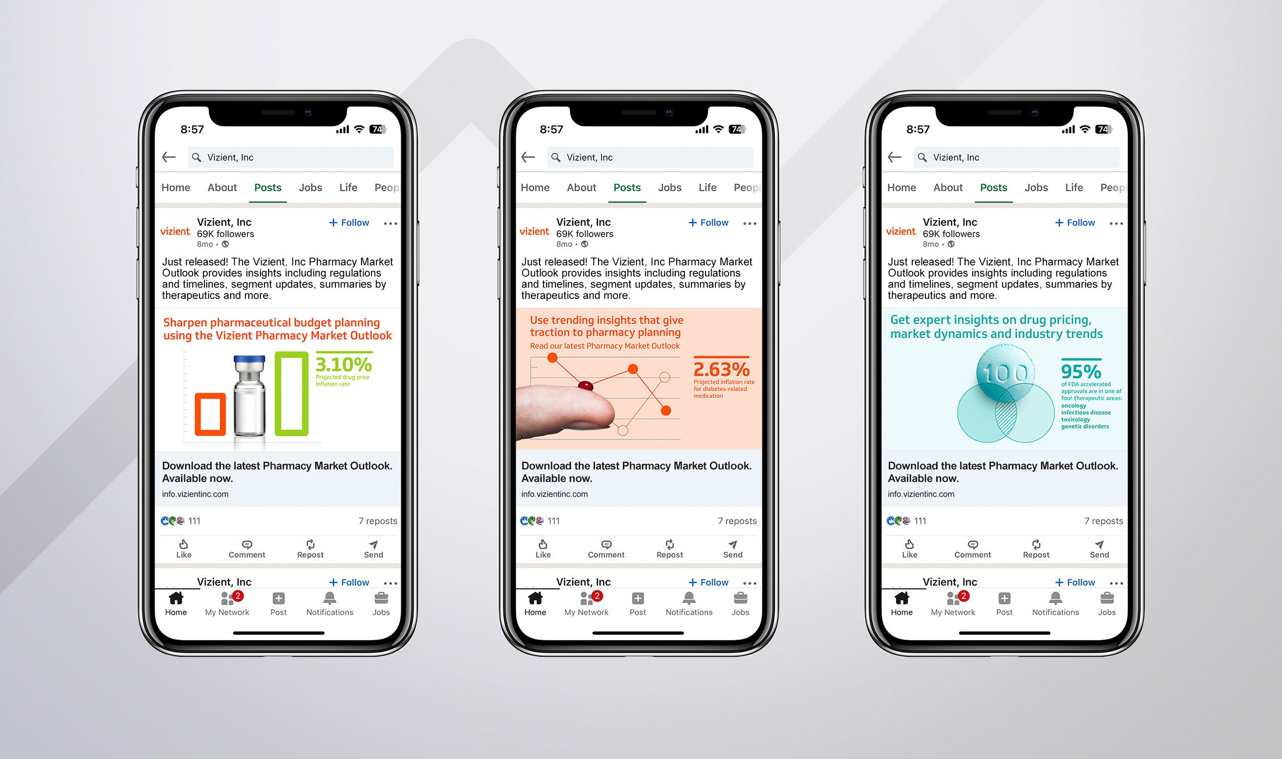 Vizient’s Pharmacy Market Outlook forecasts trends and gives clients volumes of insightful data to guide smarter spending. Because this data was key to the report, I combined pharmacy images and familiar graphs into cohesive hero visuals that instantly read “medicine.”