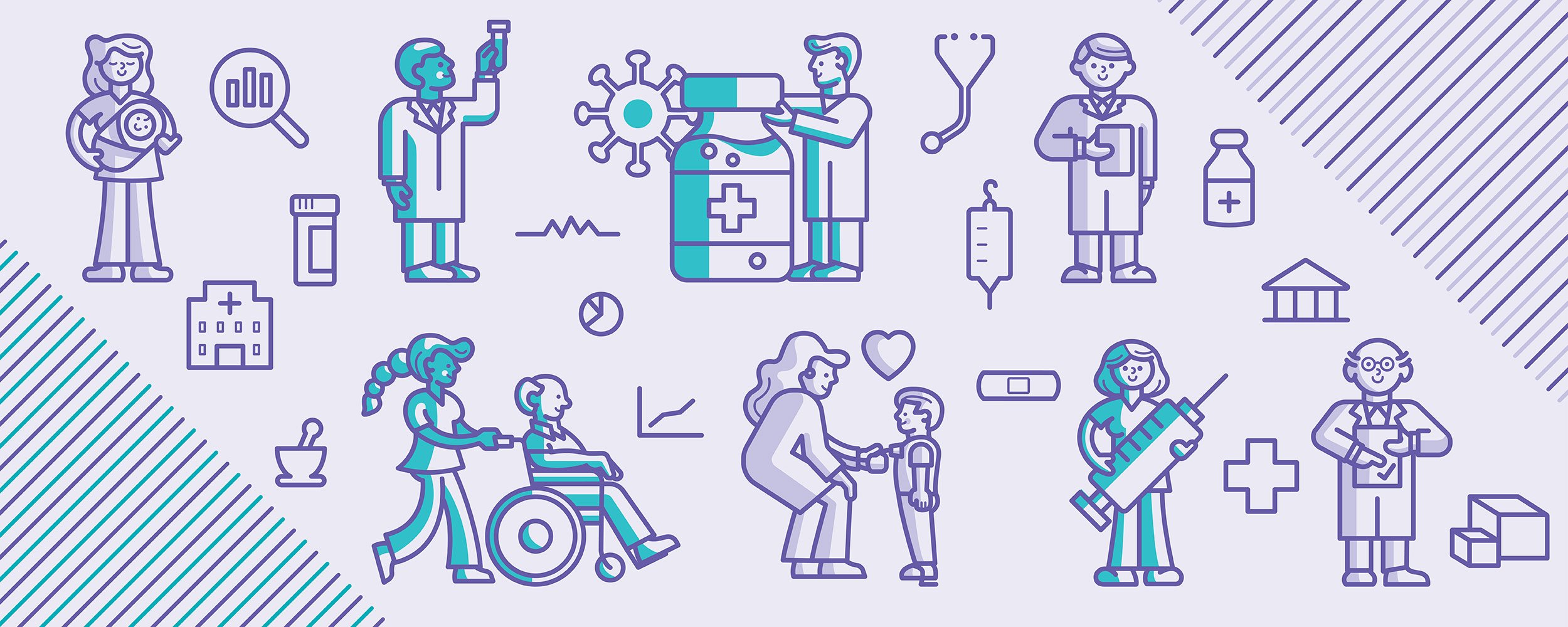 Art elements used for one of the designs. I illustrated the people to coordinate with icons from the Vizient library.