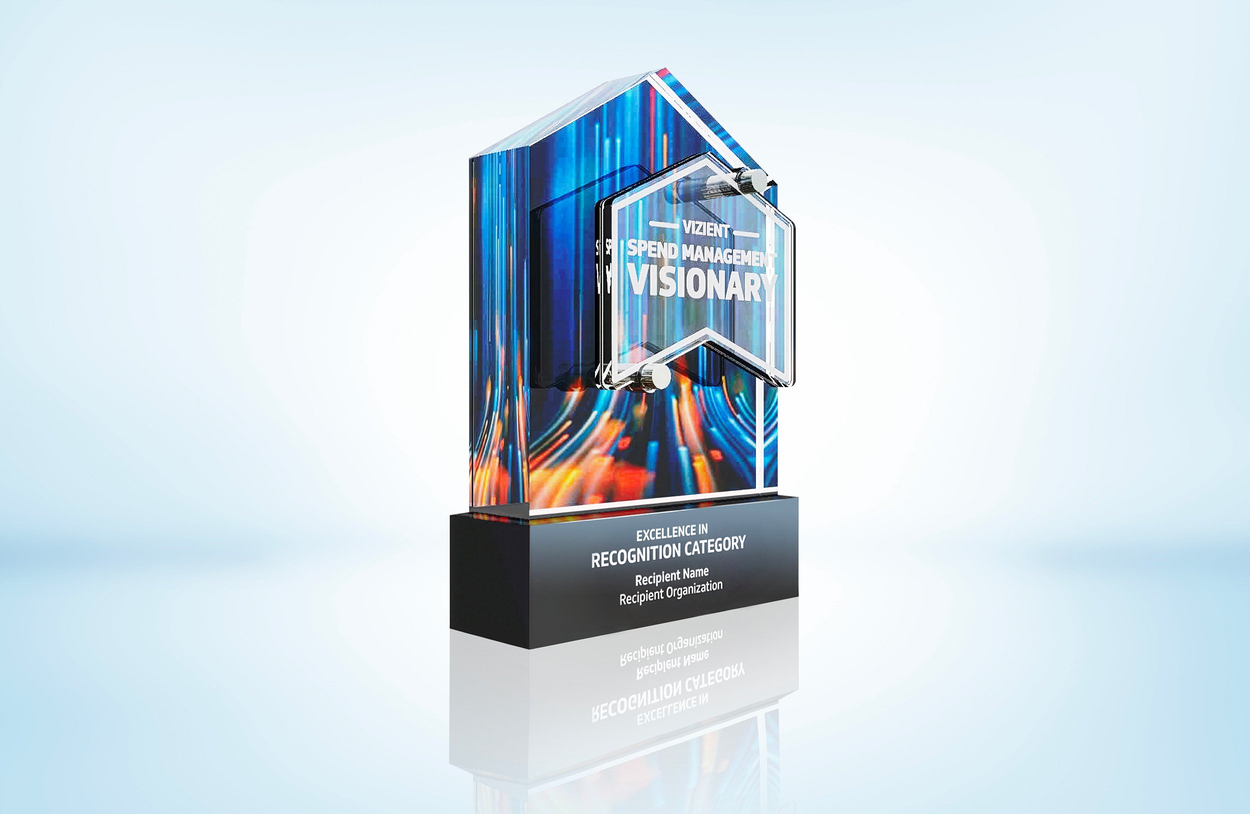 These vibrant awards were presented at an industry ceremony honoring healthcare professionals who made outstanding contributions to spend management. The designs included trophies and certificates.